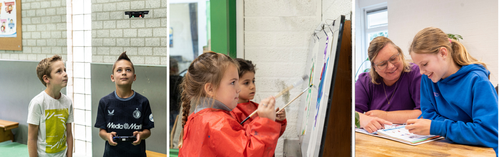 Leerkrachten reflecteren samen met de kinderen regelmatig op hun motivatie, taakgerichtheid, samenwerking, resultaat en de effectiviteit van gemaakte keuzes. Zo leren kinderen wat voor hen werkt en kunnen zij steeds beter de regie nemen over hun eigen handelen en leren.